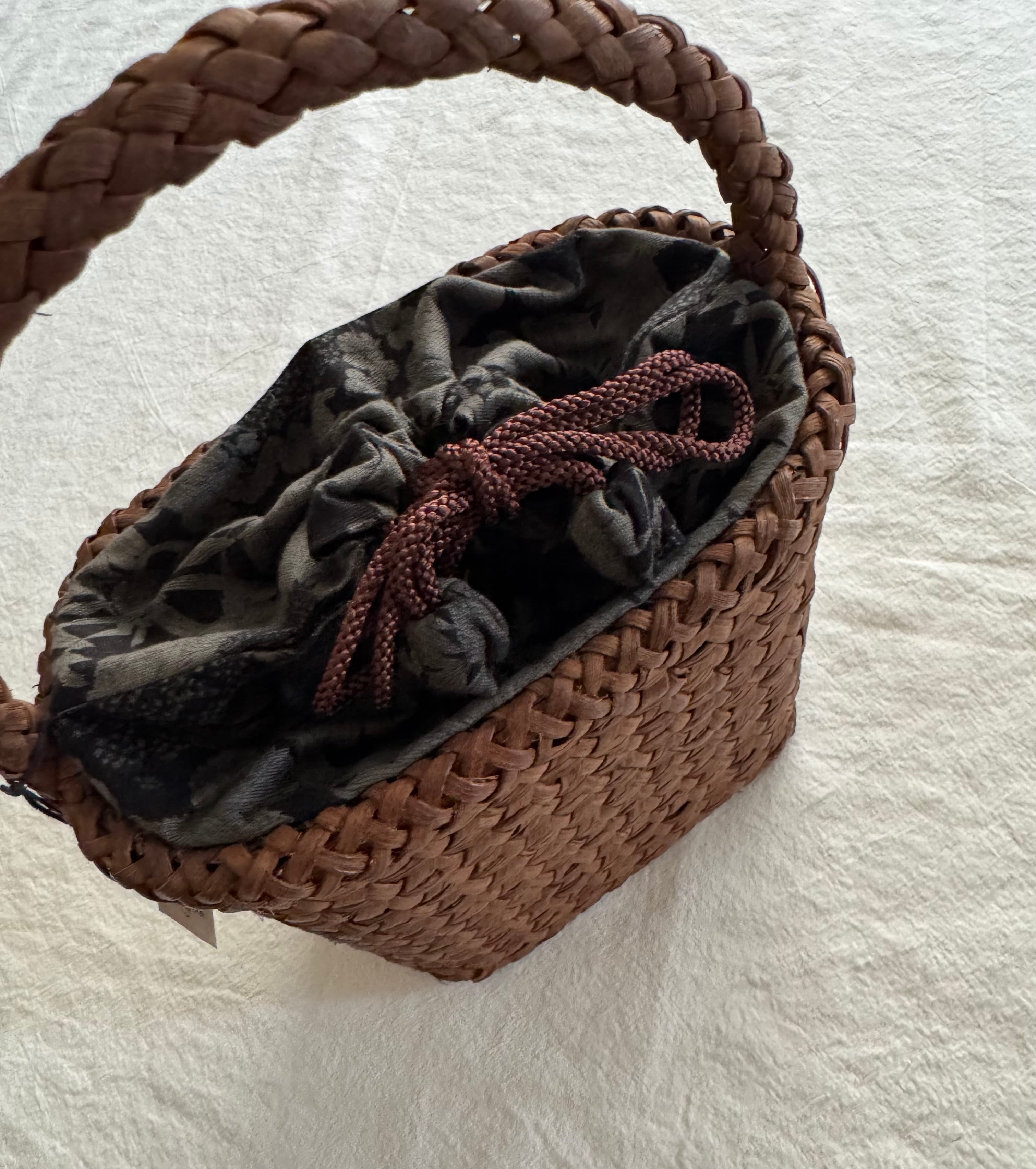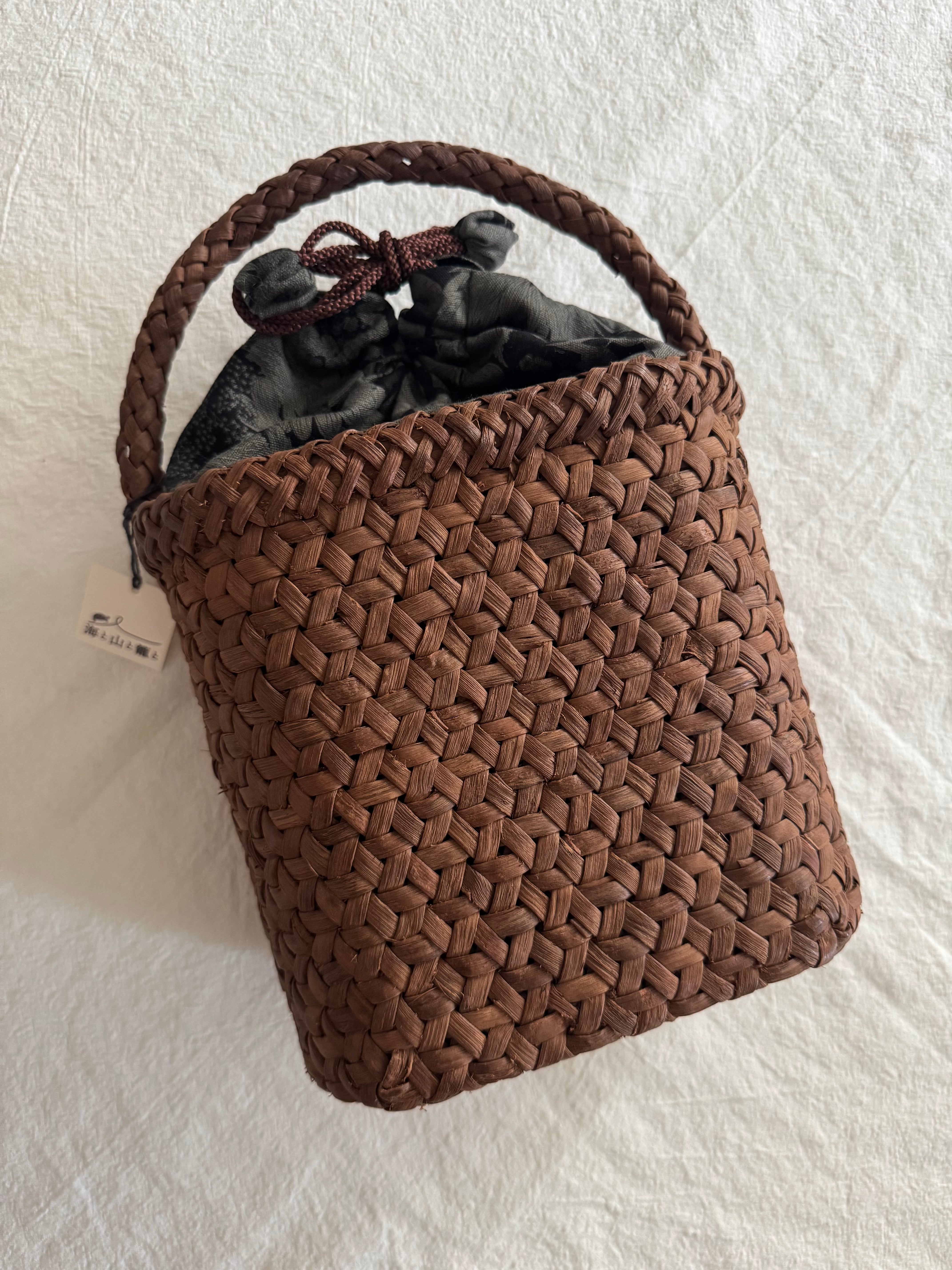 当工房の作品は、すべて国産の山葡萄樹皮を使用しております。主に北海道、群馬県、長野県の山奥に自生する良質の自然素材を一本一本丁寧に編んでおります。