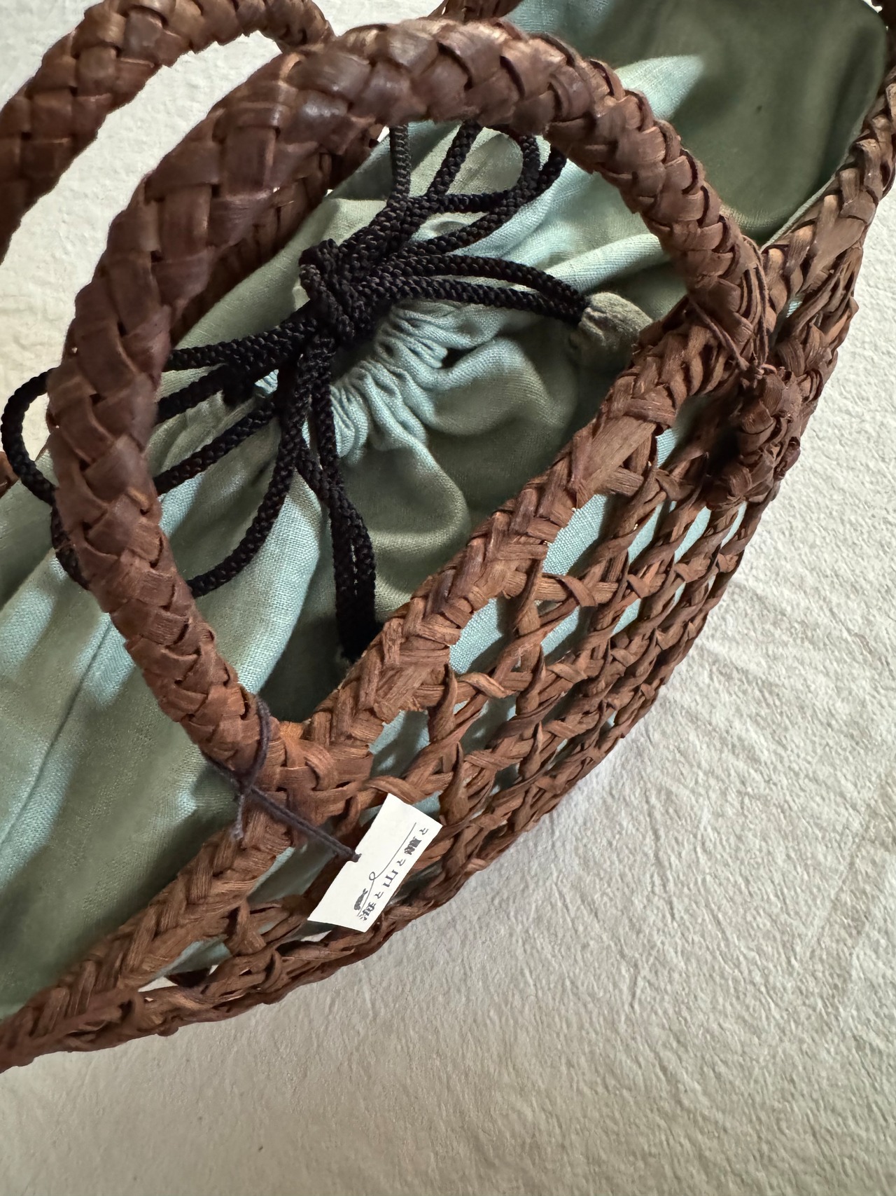 当工房の作品は自然素材をそのまま使用しておりますため、使いはじめのうちは、ケバ等により、絹やニットなどのデリケートなお召し物を傷つけてしまう場合がございます。