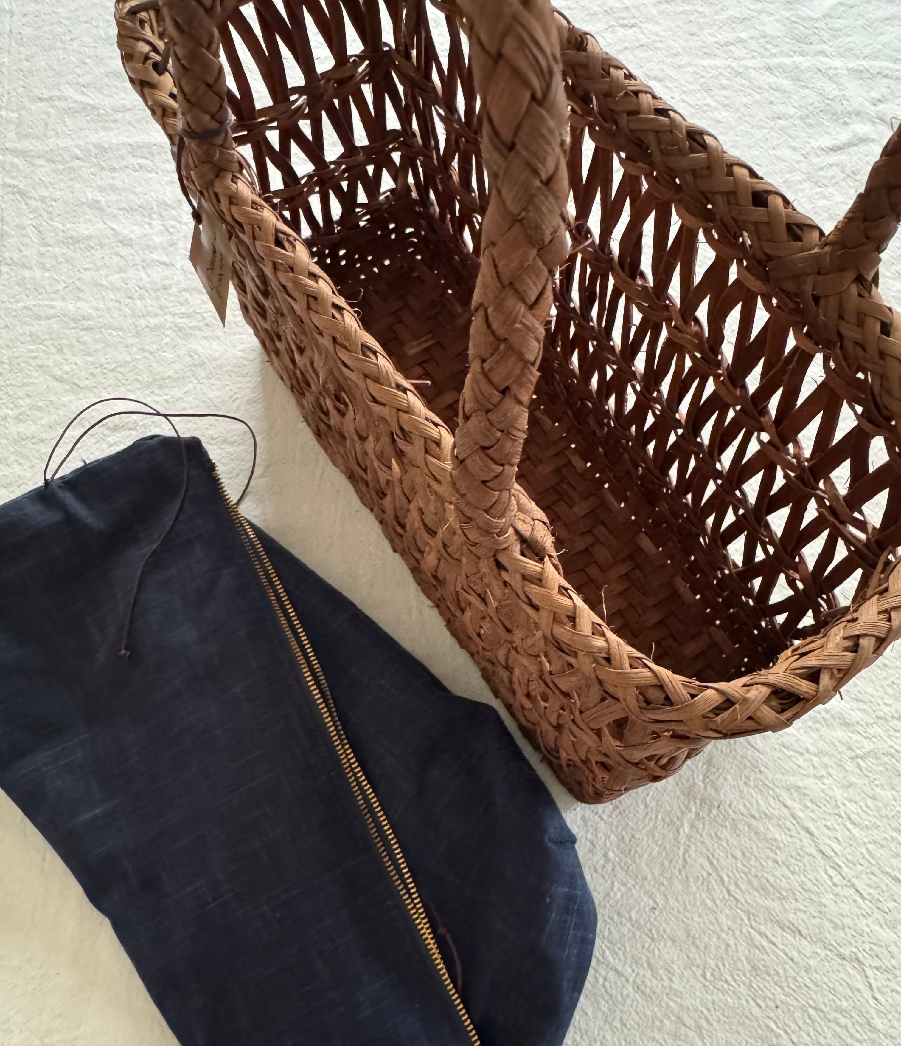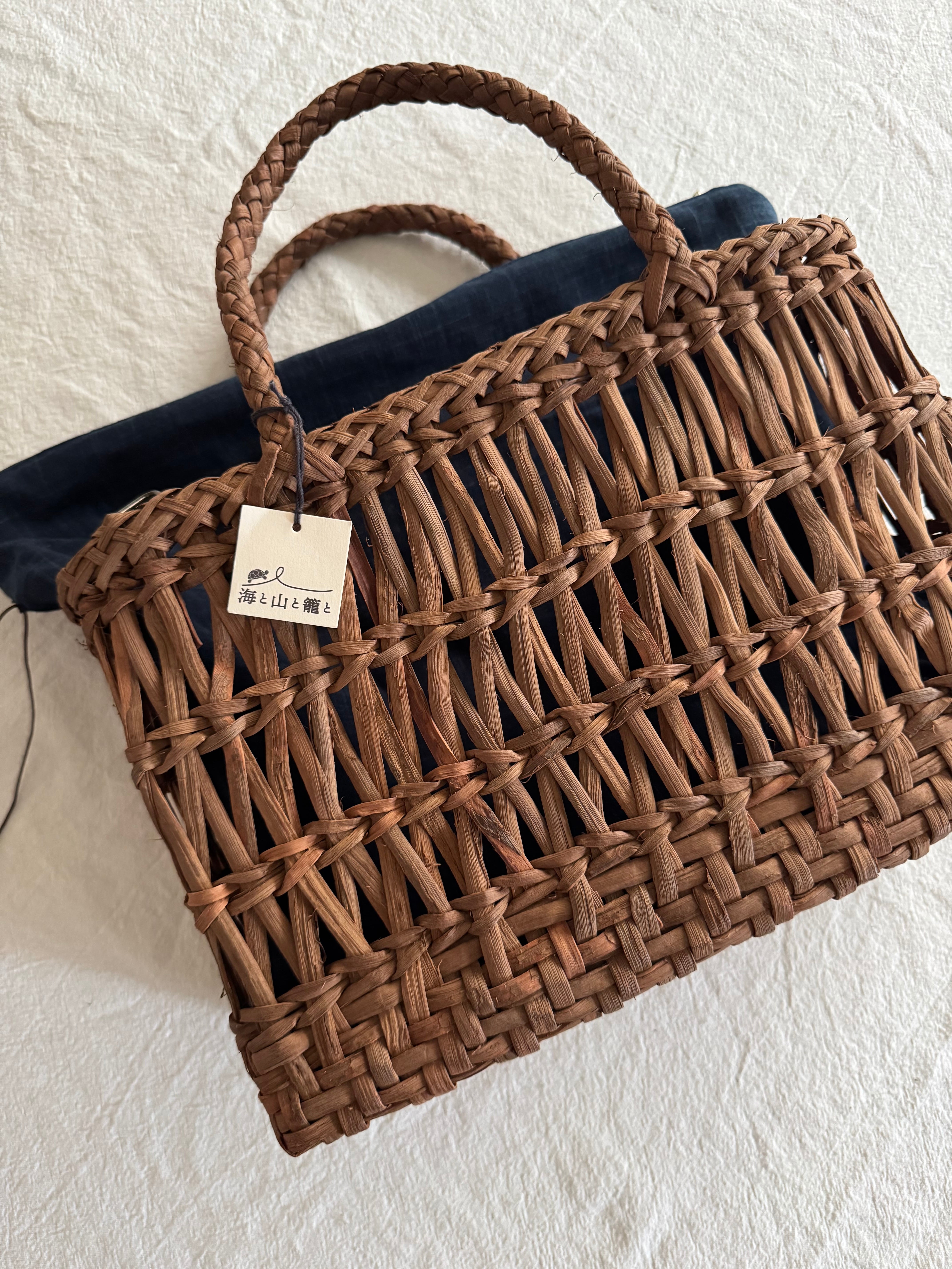 当工房の作品は、すべて国産の山葡萄樹皮を使用しております。主に北海道、群馬県、長野県の山奥に自生する良質の自然素材を一本一本丁寧に編んでおります。