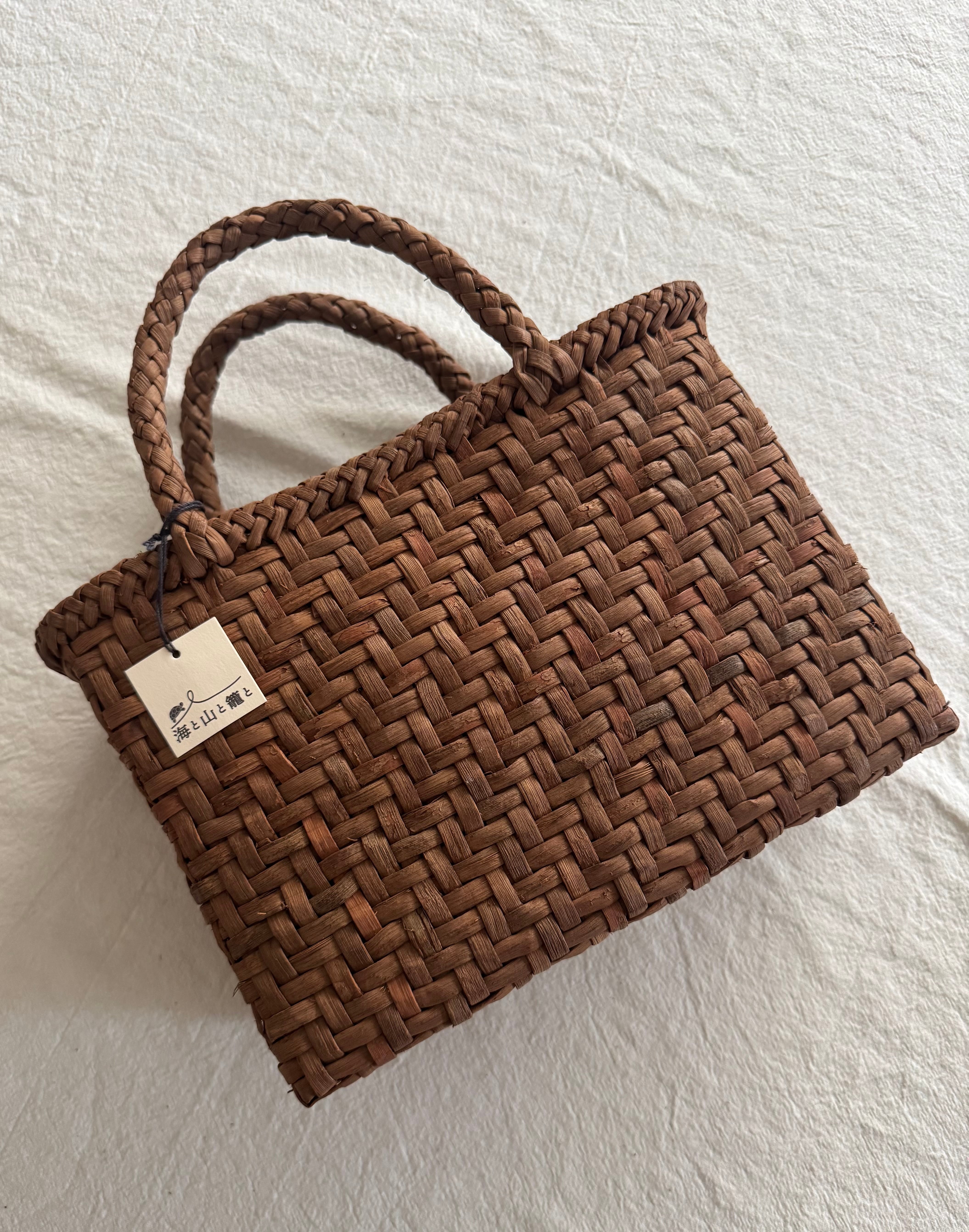 当工房の作品は、すべて国産の山葡萄樹皮を使用しております。主に北海道、群馬県、長野県の山奥に自生する良質の自然素材を一本一本丁寧に編んでおります。